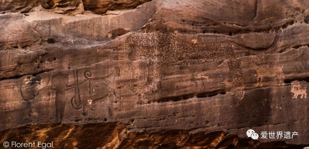 以鸵鸟为表现题材的岩画是沙特境内已发现的同题材岩画中最写实的,连蓬松的羽毛和姿态也描绘得淋漓尽致。